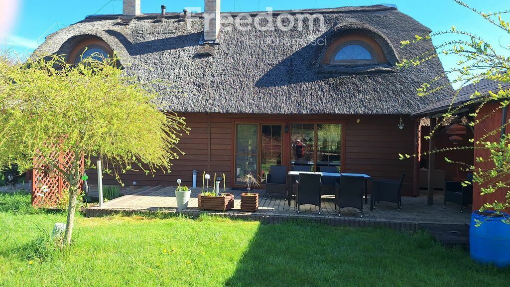 wybudowany w technologii kanadyjskiej i kryty strzechą z jezior
